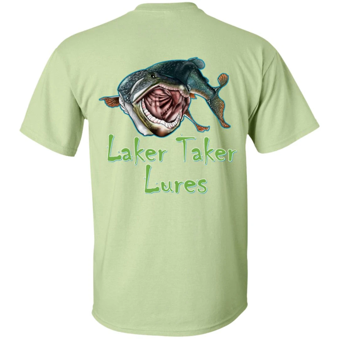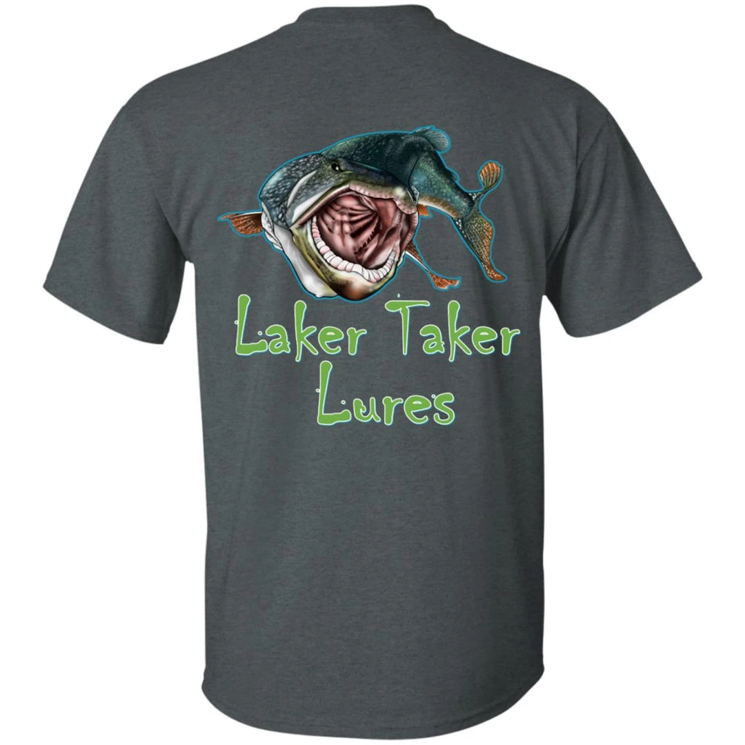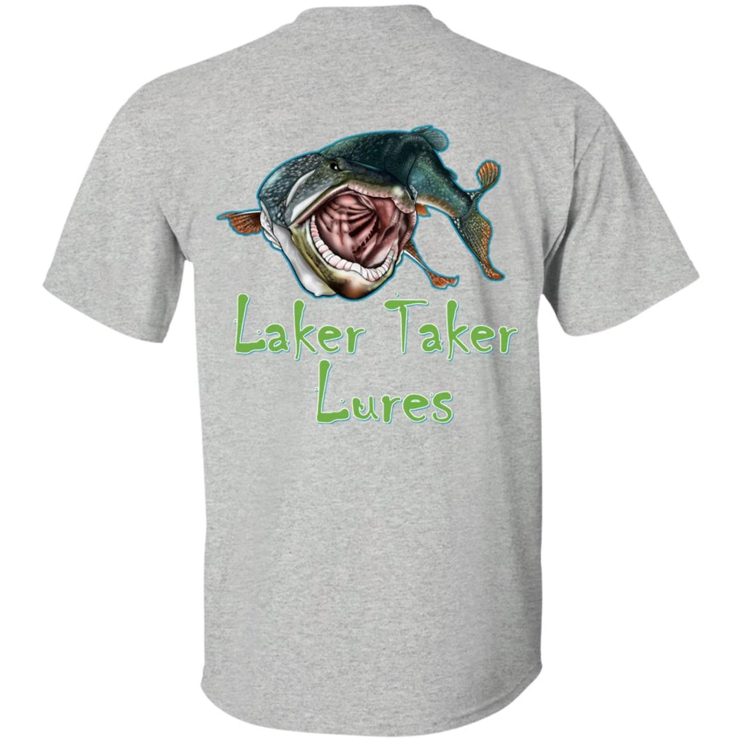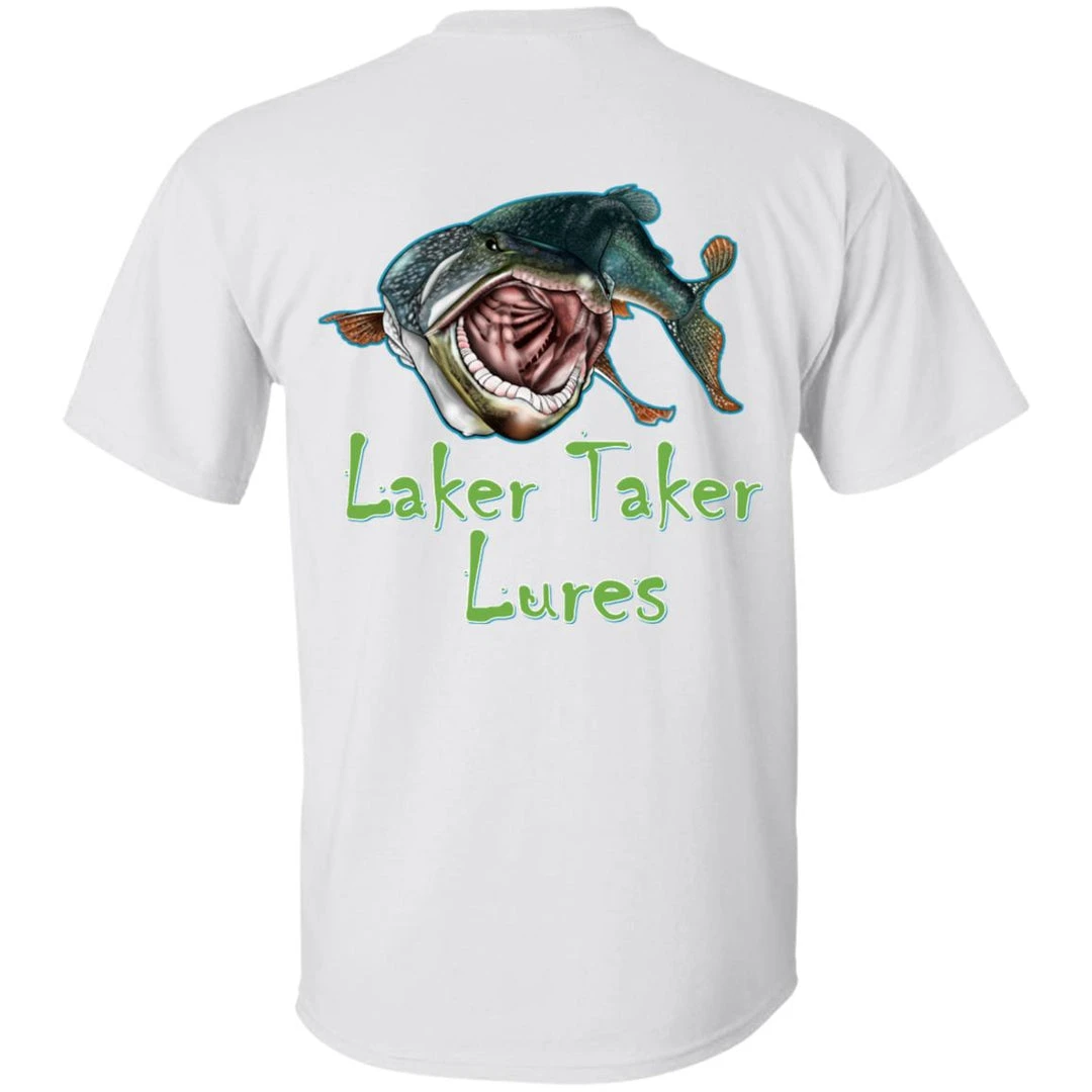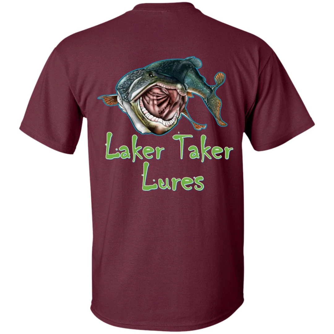 CustomCat Laker Taker Lures & Swag Men’s Ice Strong Patriotic Logo Front/Laker Taker Back Regular Size Ultra Cotton T-Shirt (12 Color Choices)