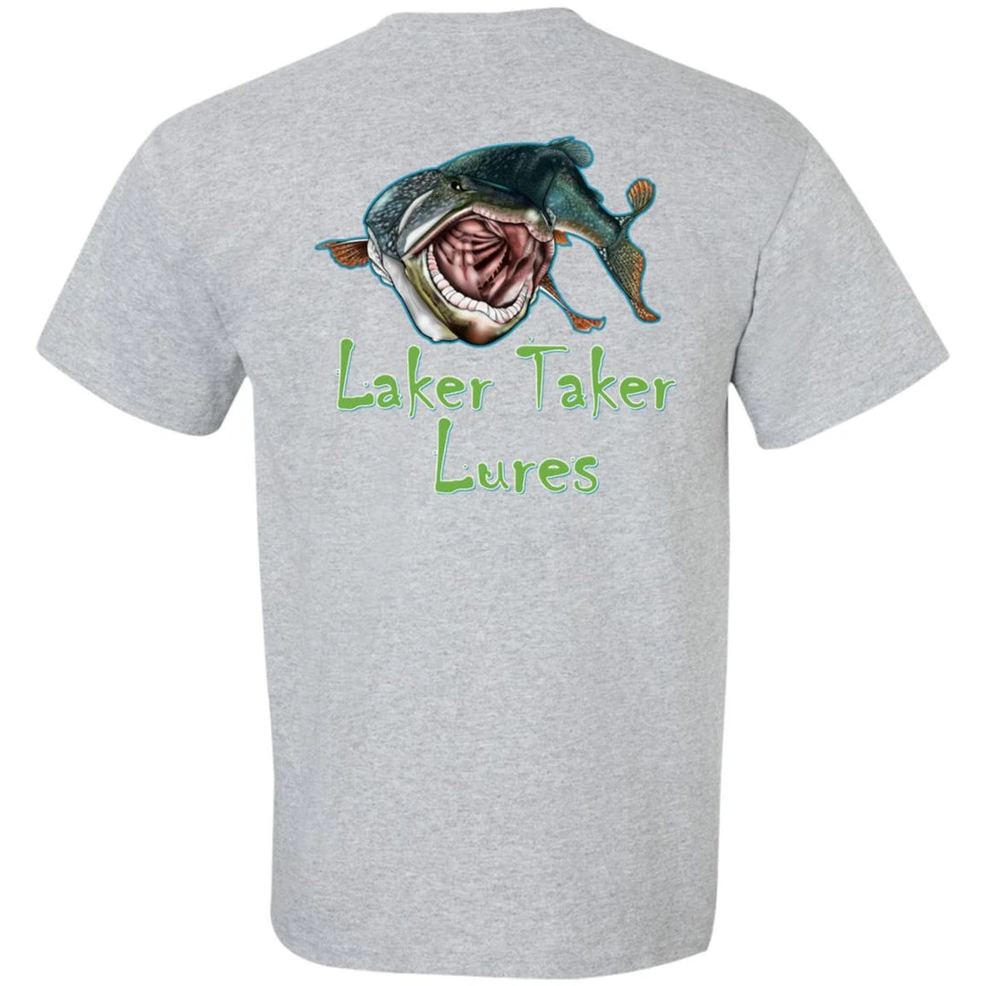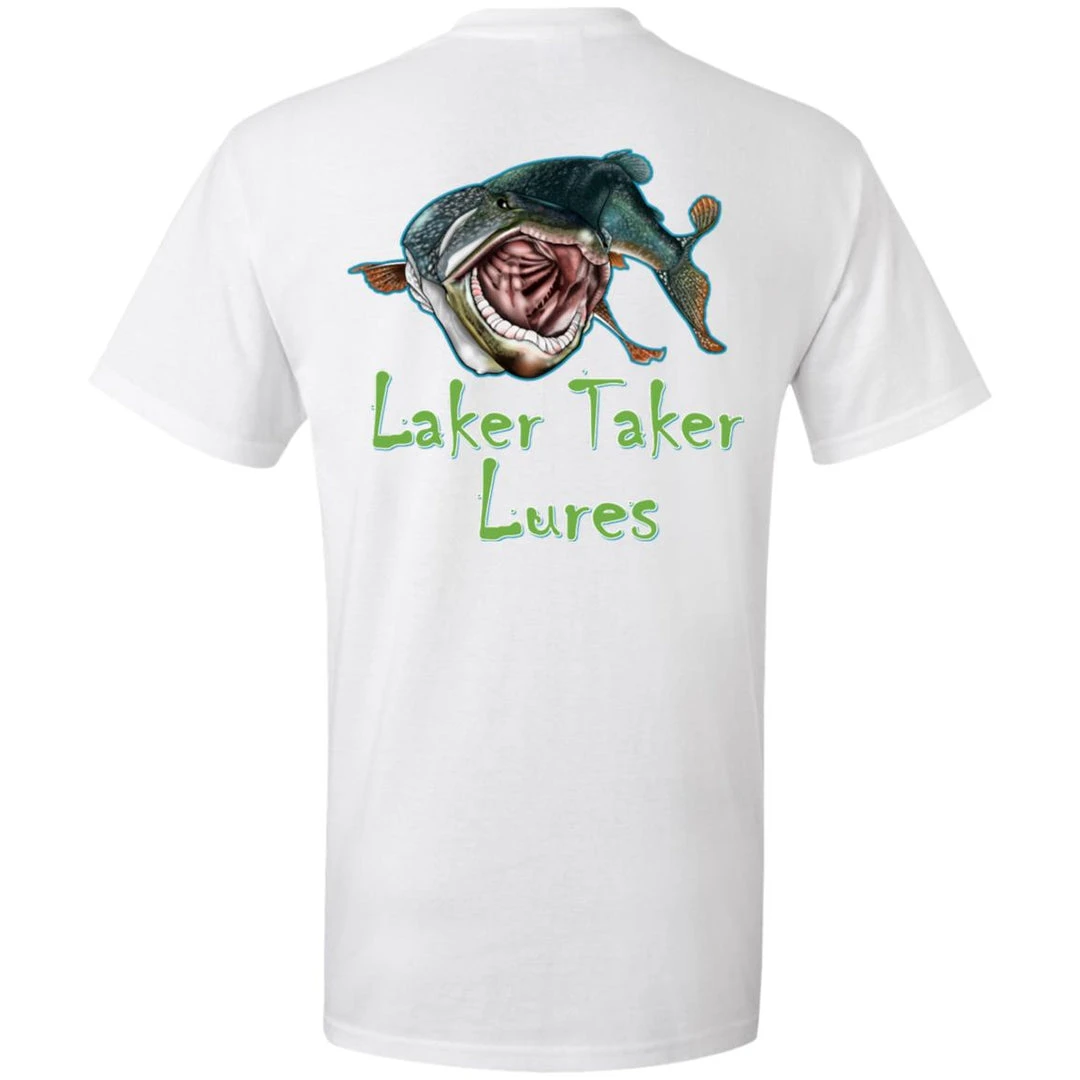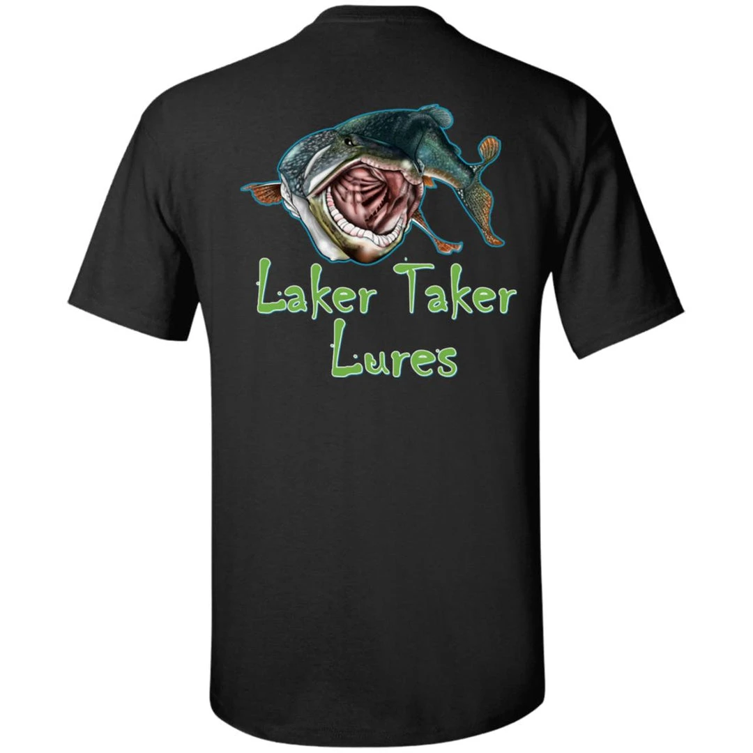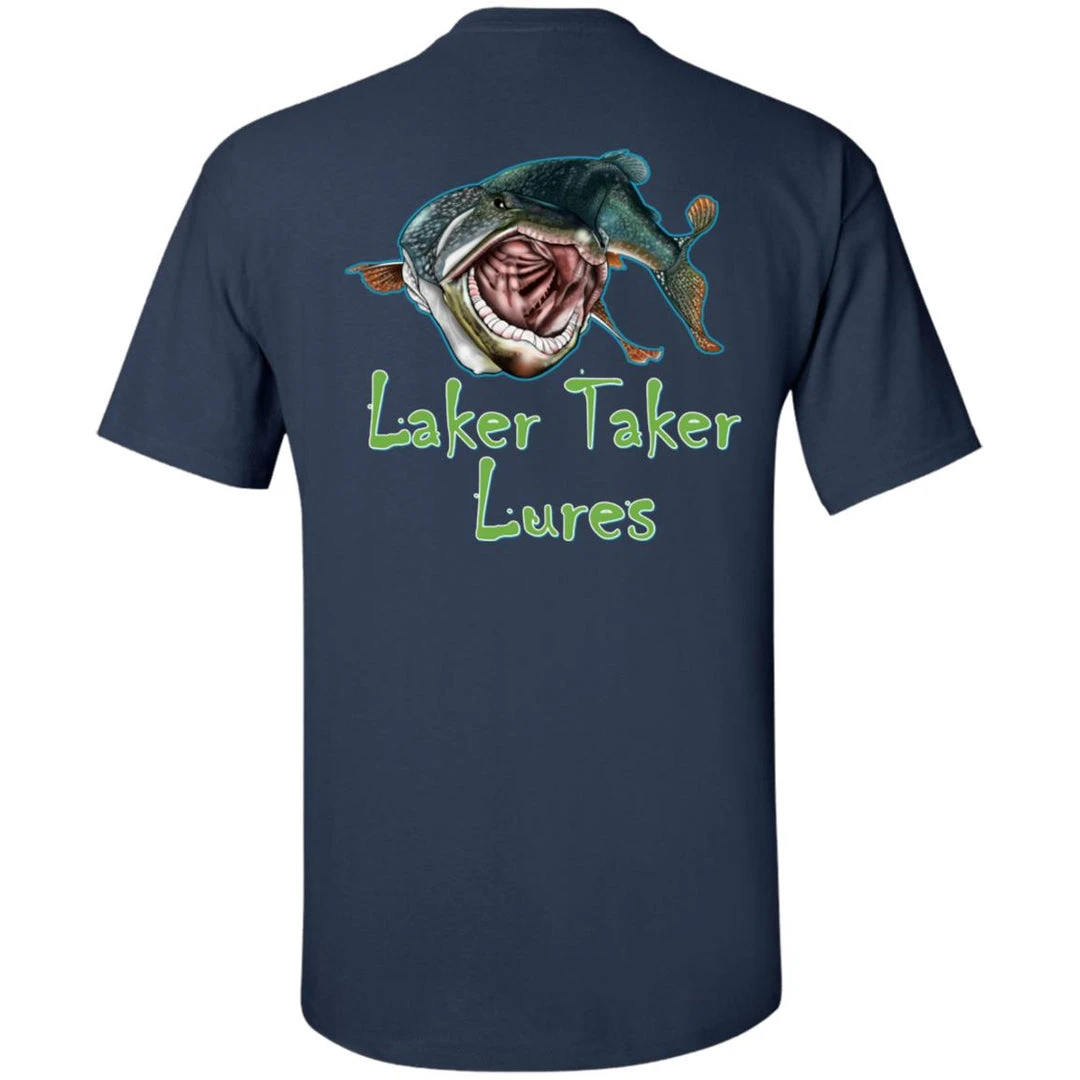 CustomCat Men’s Ice Strong Patriotic Chest/Laker Taker Back TALL Ultra Cotton T-Shirt (4 Color Choices) Laker Taker Lures & Swag