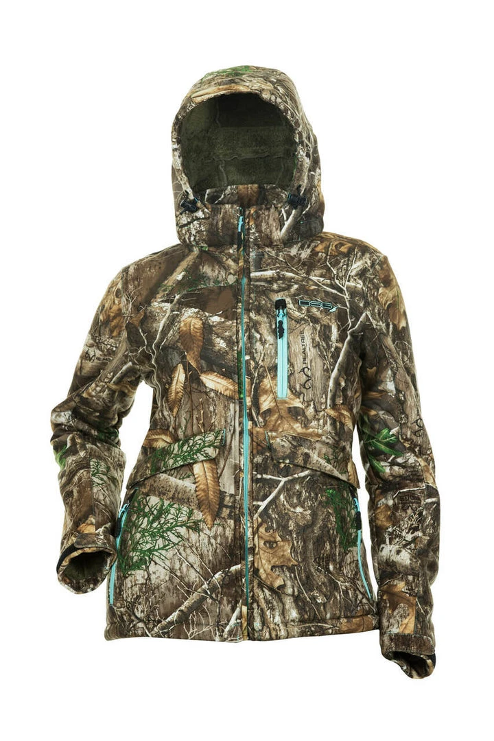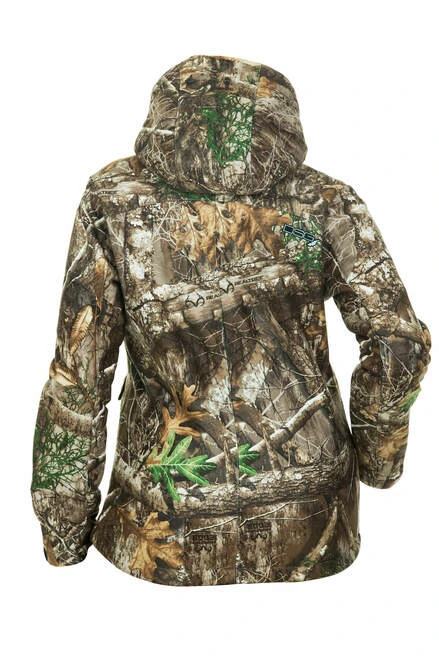 The Ella Hunting Jacket has been redesigned! The Ella jacket features a Realtree Edge ® camo brushed tricot outer layer laminated to a plush berber (Olive Green) inner layer. This 3 layer women’s camo coat is one of our warmest, yet the breathable membrane will regulate your body temperature so you don’t overheat. The Realtree Edge ® camouflage pattern is the first camo pattern that allows you to blend into your environment at close range and from a distance. Because it has warm grays and browns, this hooded hunting jacket works well all year round!
