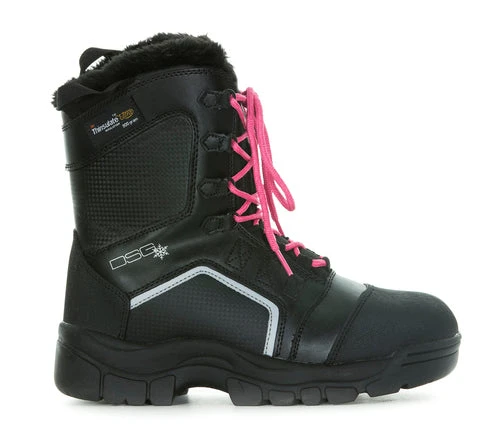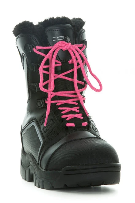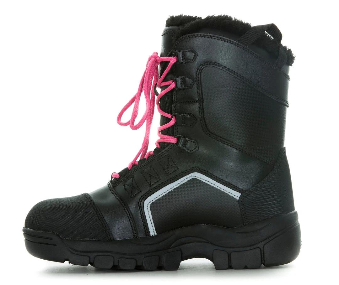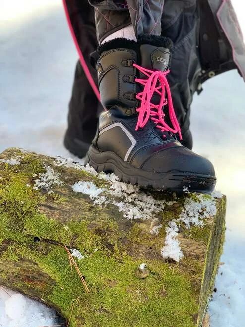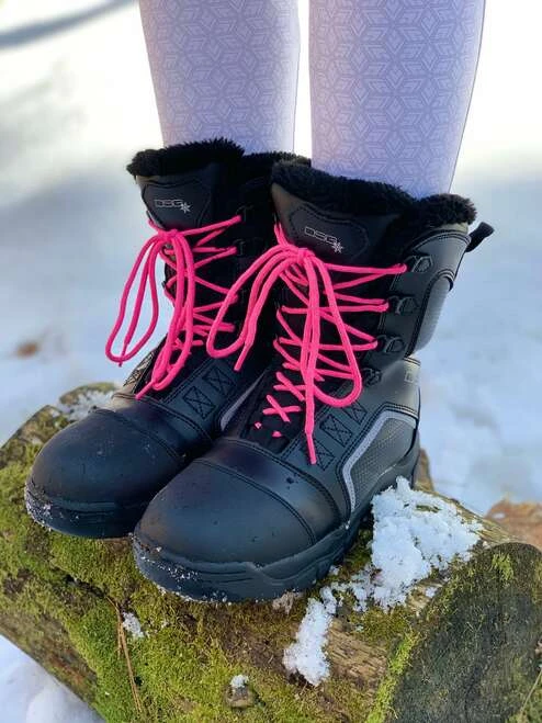 Named after the term for frost formed on cold objects by rapid freezing of water vapor, our women’s snowmobiling boots are tough enough to stand through any weather. You can style the Rime women’s insulated snow boot to your liking with the four different shoe lace colors provided with each pair.  For ultimate comfort and warmth, we suggest pairing this Thinsulate snow boot with our DSG Wigwam snowmobile socks.  The 3M Thinsulate insulation is at an ideal weight of 800 grams for warmth while on the trail. Your coziness level will be 100% because of the faux fur soft lining throughout the interior of this women’s insulated snowmobile boot! The toe cap gives you extra wear protection and the out sole has excellent traction for walking on snow and ice.