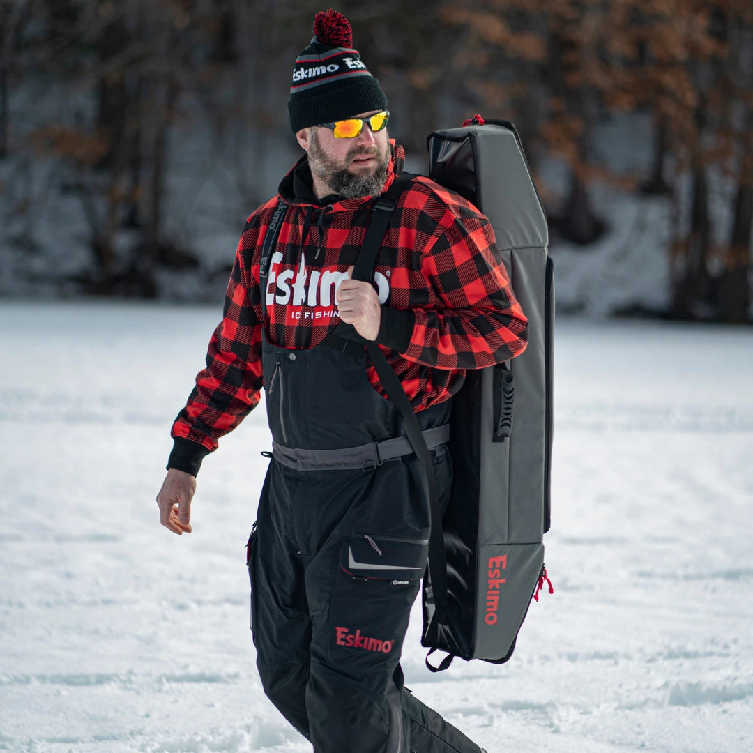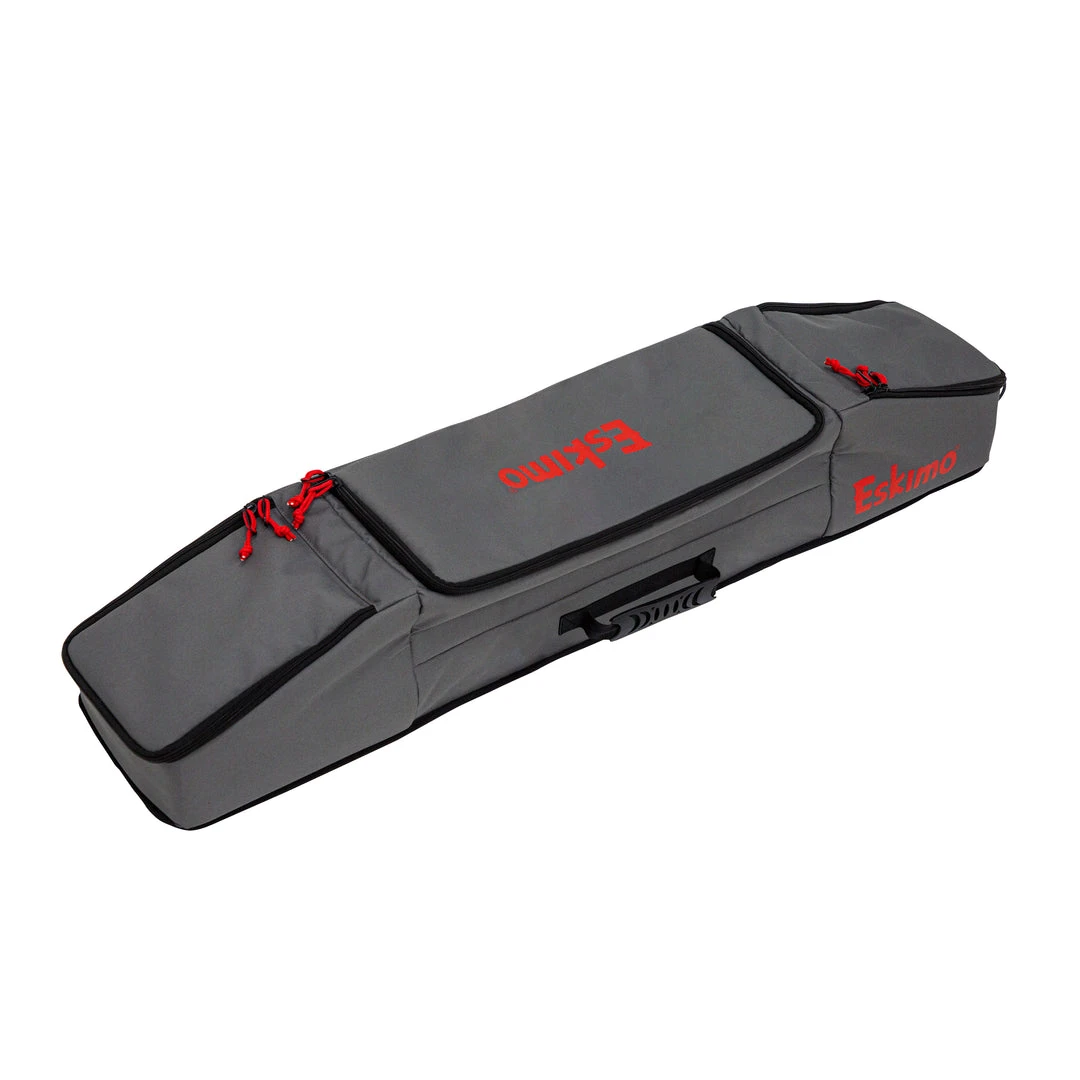 The Eskimo 42” Rod Locker is designed to keep your rods, tackle, tip-ups, and gear safe and organized on the ice. Rigid sidewalls, and no-snag rod tubes help prevent broken rod tips or unnecessary re-tying after transport. The spacious, zippered middle gear locker provides secure storage for tackle, tip-ups, hats, gloves, snacks, or extra gear. Holds four rods, up to 42”.