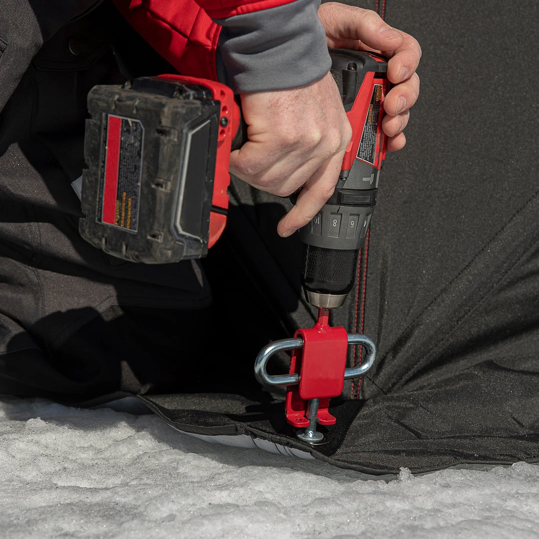The time consuming task of hand drilling ice anchors into the ice is a thing of the past with the ice anchor drill adapter! Simply attach it to a cordless drill, place your ice anchor in the holder (even a competitor model), place the anchor in the desired location on the ice and push the trigger. It also works great for reeling up tip-ups.
