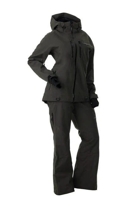 These women’s waterproof Harlow technical fishing pants use the highest quality material available for building technical shell outerwear – Sympatex®. Sympatex® is a reputable German company that demands perfection when using their materials to build outdoor apparel. Before production, samples of each piece are sent to Sympatex® in Germany to go through 48 hour rain chamber tests. This ensures that the waterproofing, seam sealing, and zippers of the jackets and pants are 100% waterproof and will protect customers from the elements. You will stay dry and your temperature will stay regulated in this outerwear because of the finely weaved material and its breathability!