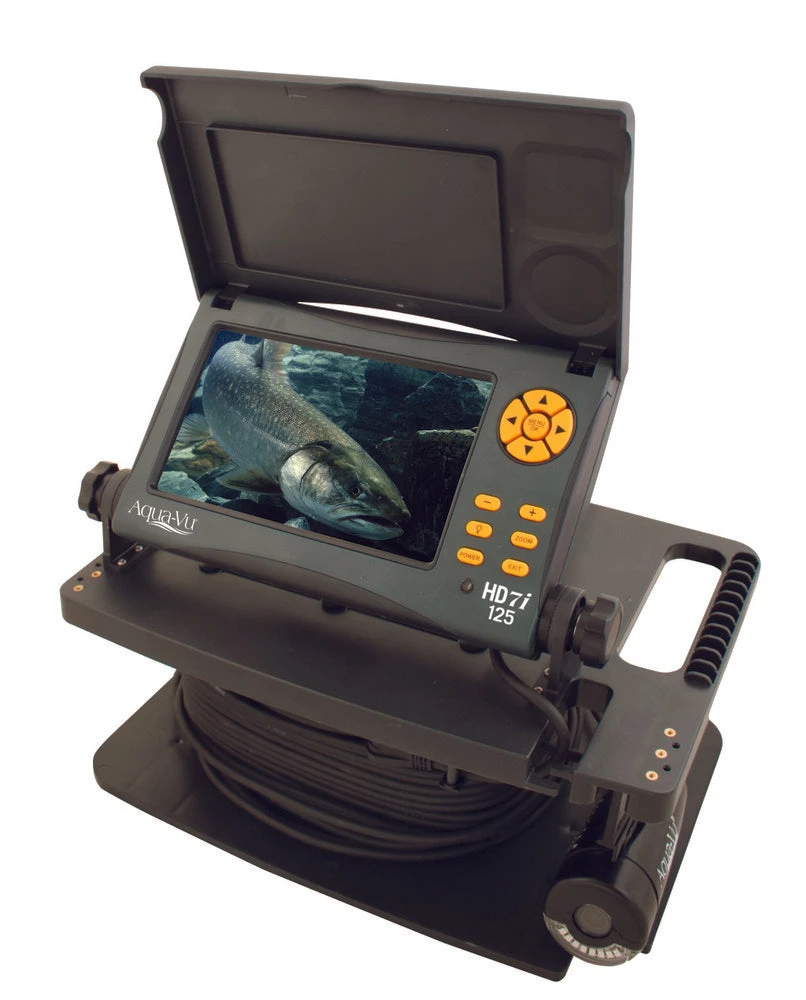 New HD7i-125 Gen2 with full 1080p HD resolution and image-clarifying True-Color technology plus battery power saver mode. Outfitted with Aqua-Vu’s modular XD Camera with Quick Attach, the HD7i-125 High-Definition Underwater Viewing System displays rich, colorful underwater video on a dynamic and spacious 7-inch Daylight Viewable LCD. XD Camera includes 125-feet of durable cable with high intensity, adjustable IR Lighting, and is compatible with all Aqua-Vu XD accessories (sold separately).
