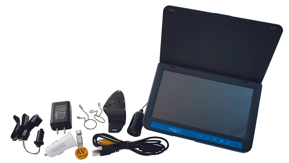 The all new Aqua-Vu AV722 features a full 7-inch color LCD monitor with video out and an integrated sunshield/screen protector. Advanced camera optics provide a clear, high resolution color view. Includes 50-feet of durable cable, a lithium battery, charger and custom carrying case with additional storage for accessories.
