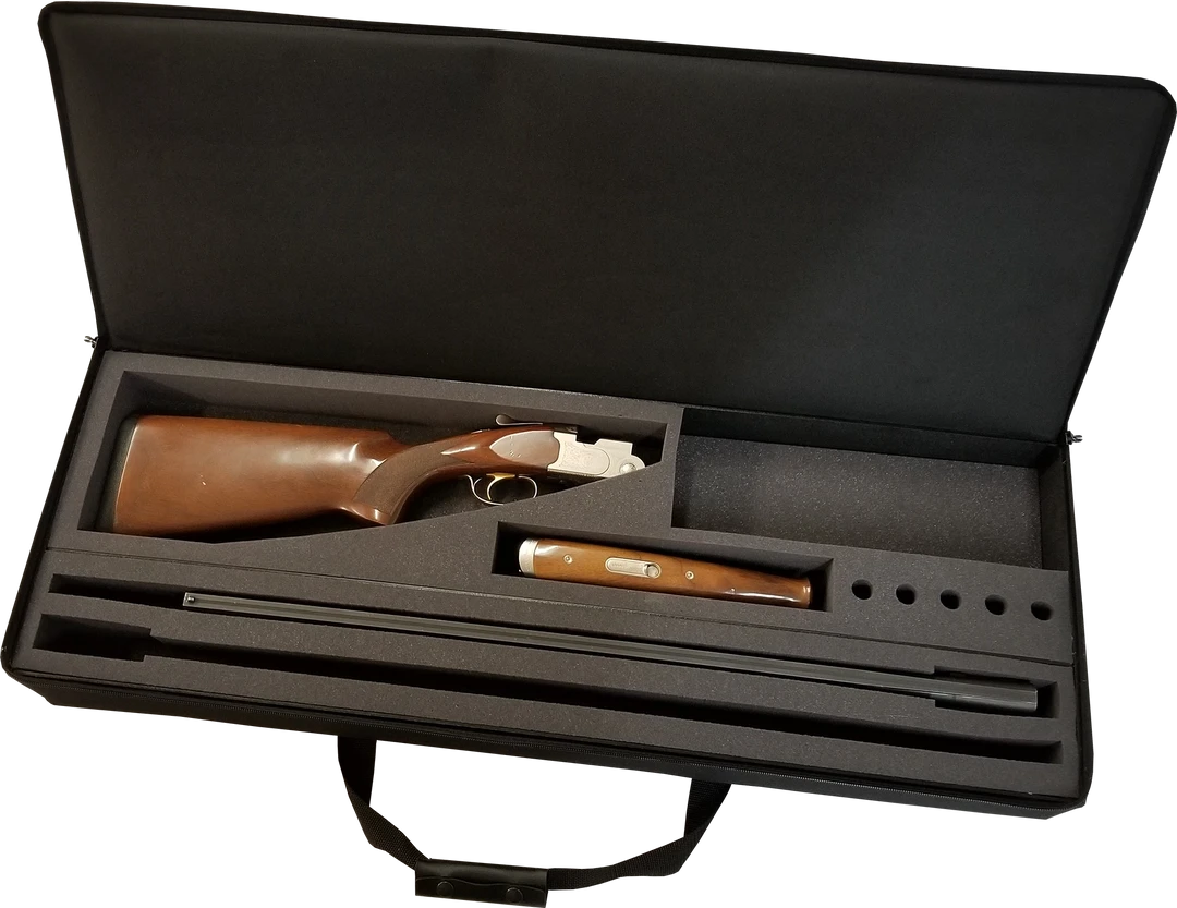 Soft foam pre-cut cavities cradle the Stock, Forearm, and Barrel(s)