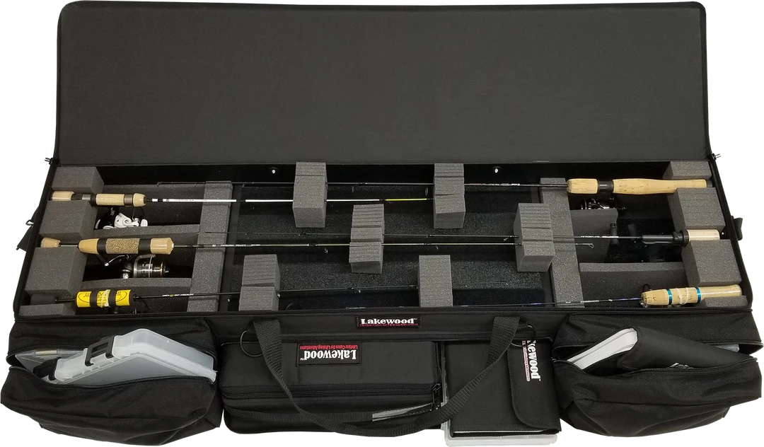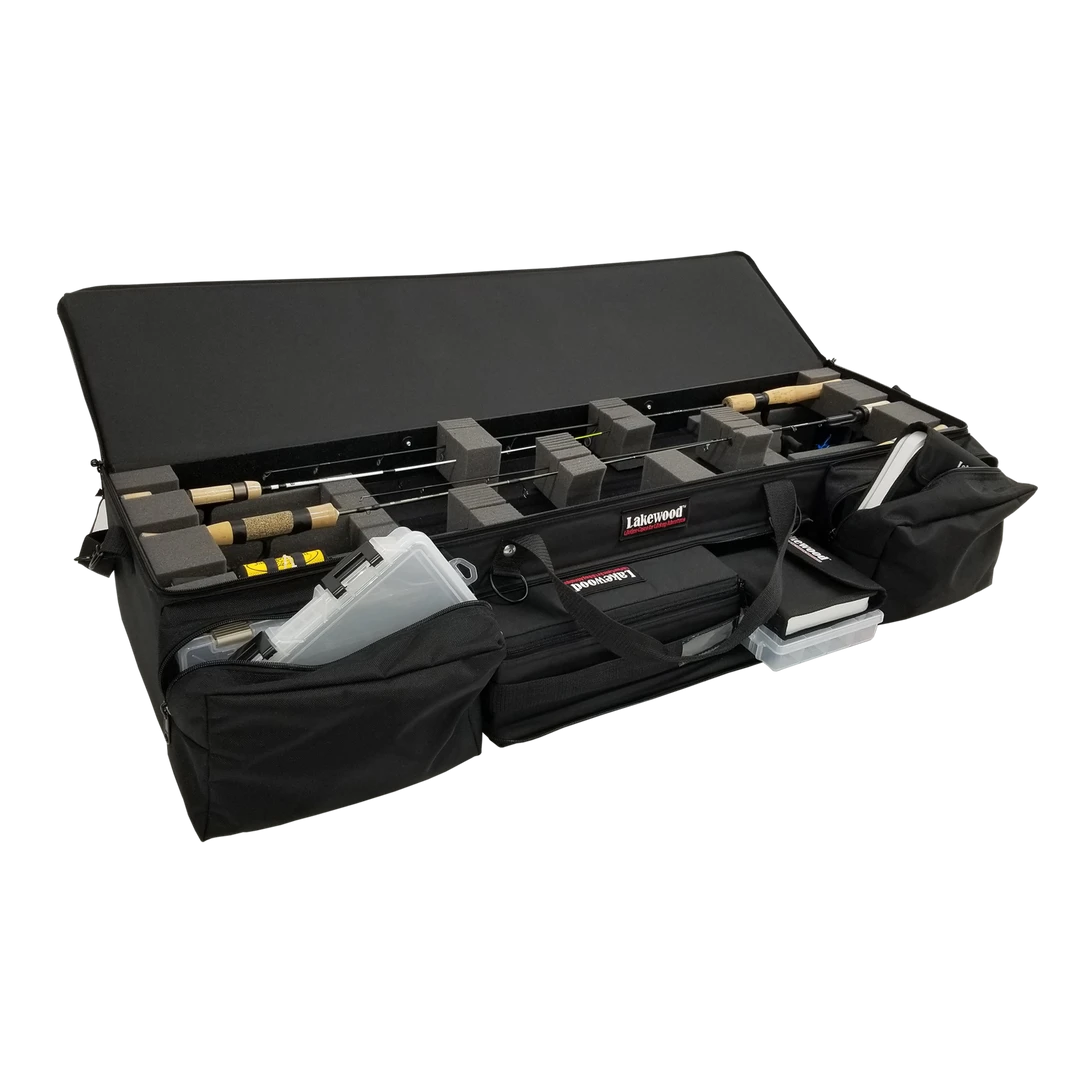 Designed to hold all your gear while protecting your rods and reels (accessories/rods shown are not included)