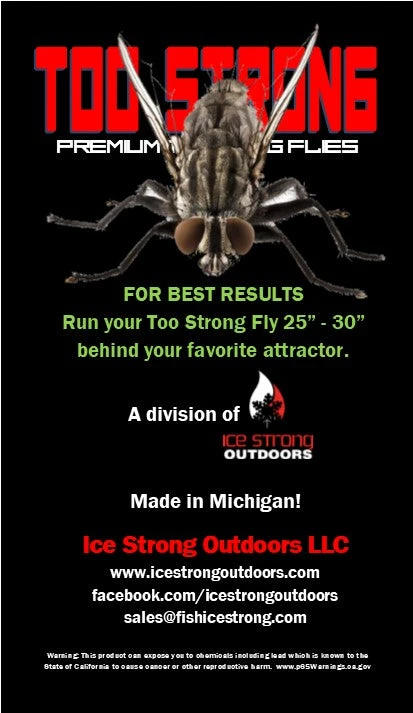 Run your Too Strong Premium Trolling Flies 25″ – 30″ behind your favorite attractor.