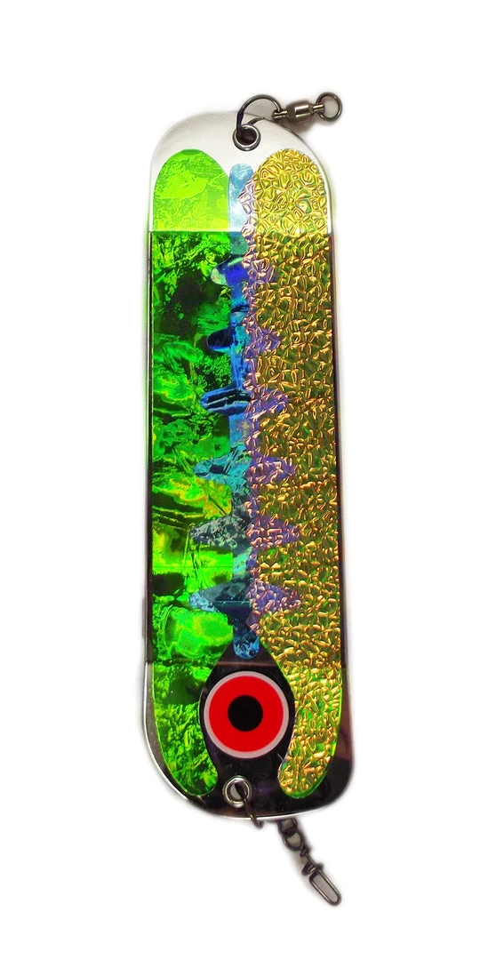 Pro King Flashers are made using the OPTI Inticer two-fin flasher blade. Heavy-duty stainless hardware with welded rings are standard on every flasher. The unique design can be trolled at a wide range of speeds from 1.0 to 3.3 MPH. Pro King Flashers come in dozens of tournament winning colors. Add Pro King Tape!