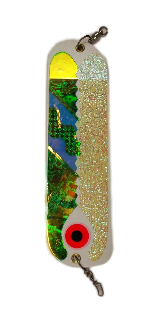 Run your Laker Taker Lure, Too Strong Premium Trolling Flies or Krunch Meat Rigs, 25″ – 30″ behind your favorite attractor.