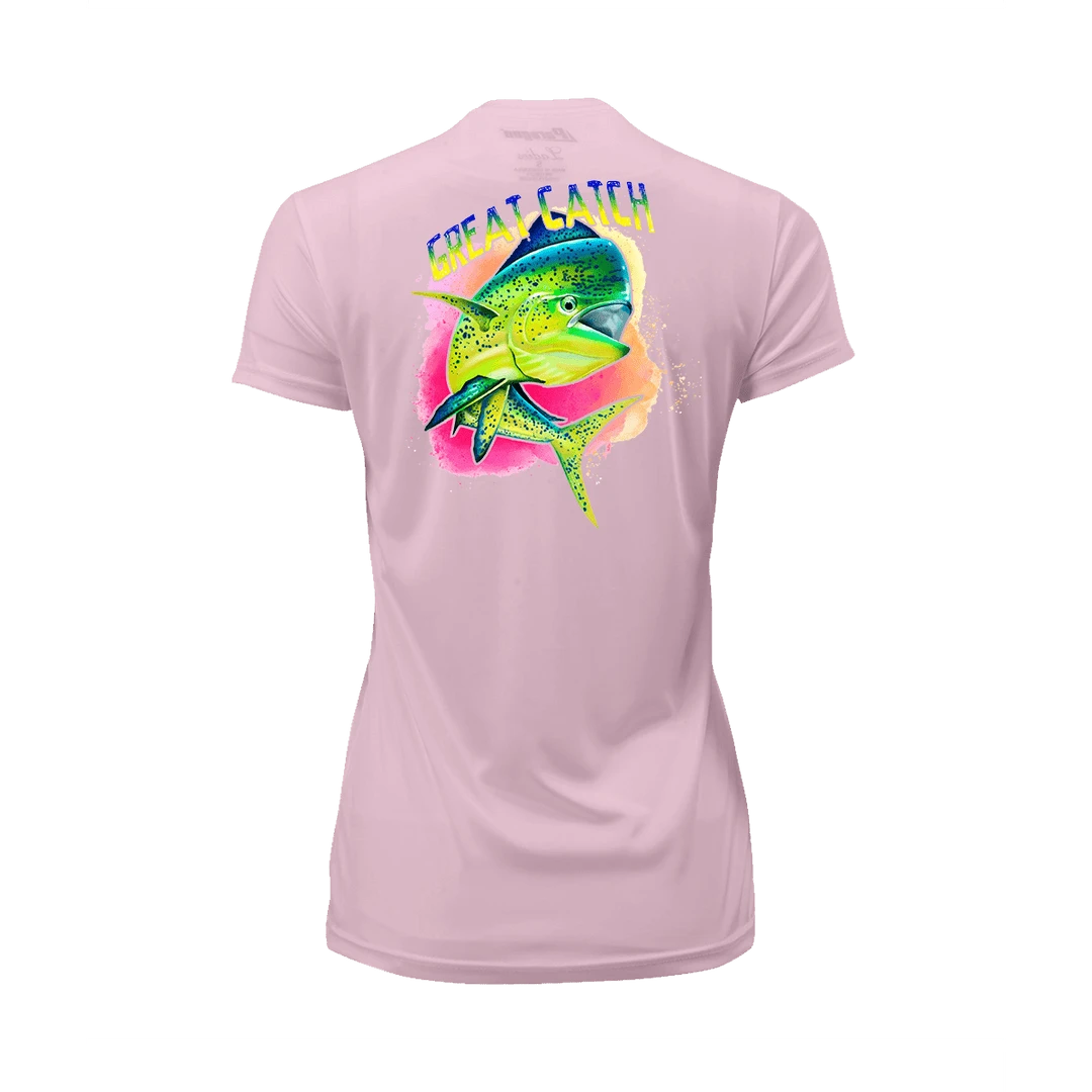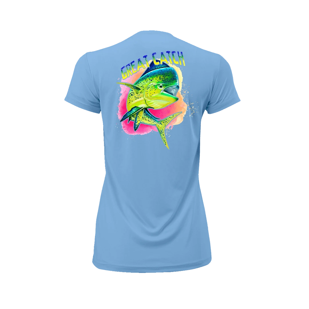 The Great Catch! Short Sleeve Performance Shirt is designed to be worn anywhere. Relax at home, or adventure out in style. Additionally it is made from 100% microfiber performance polyester with an Anti-microbial and Wrinkle Resistant finish. Providing Paragon Plus moisture management and 50+ UPF Protection. This shirt features all of the performance you need: Detailed stitching, Double-needle stitched neck and bottom hem, Self-fabric neck, and Raglan shoulder, inset sleeves. You will never wear this shirt out. Perfect for on the boat, or relaxing at the bar.