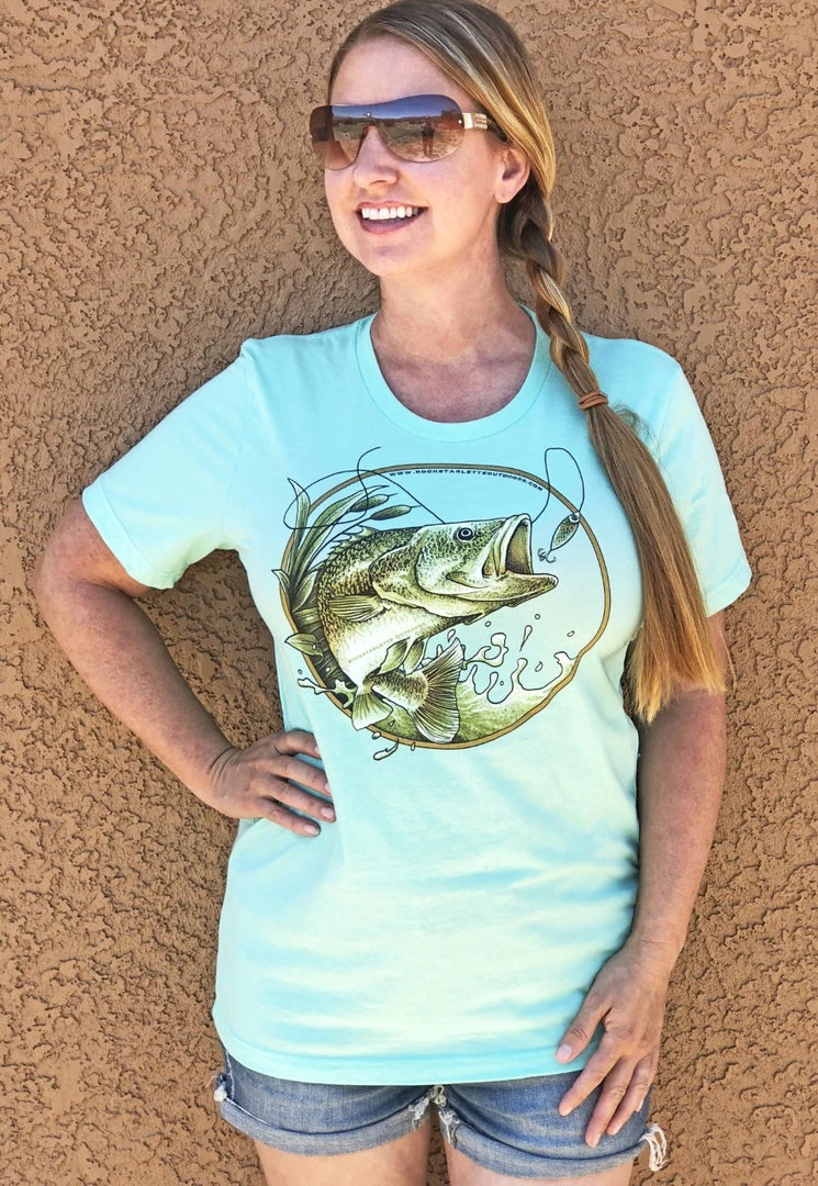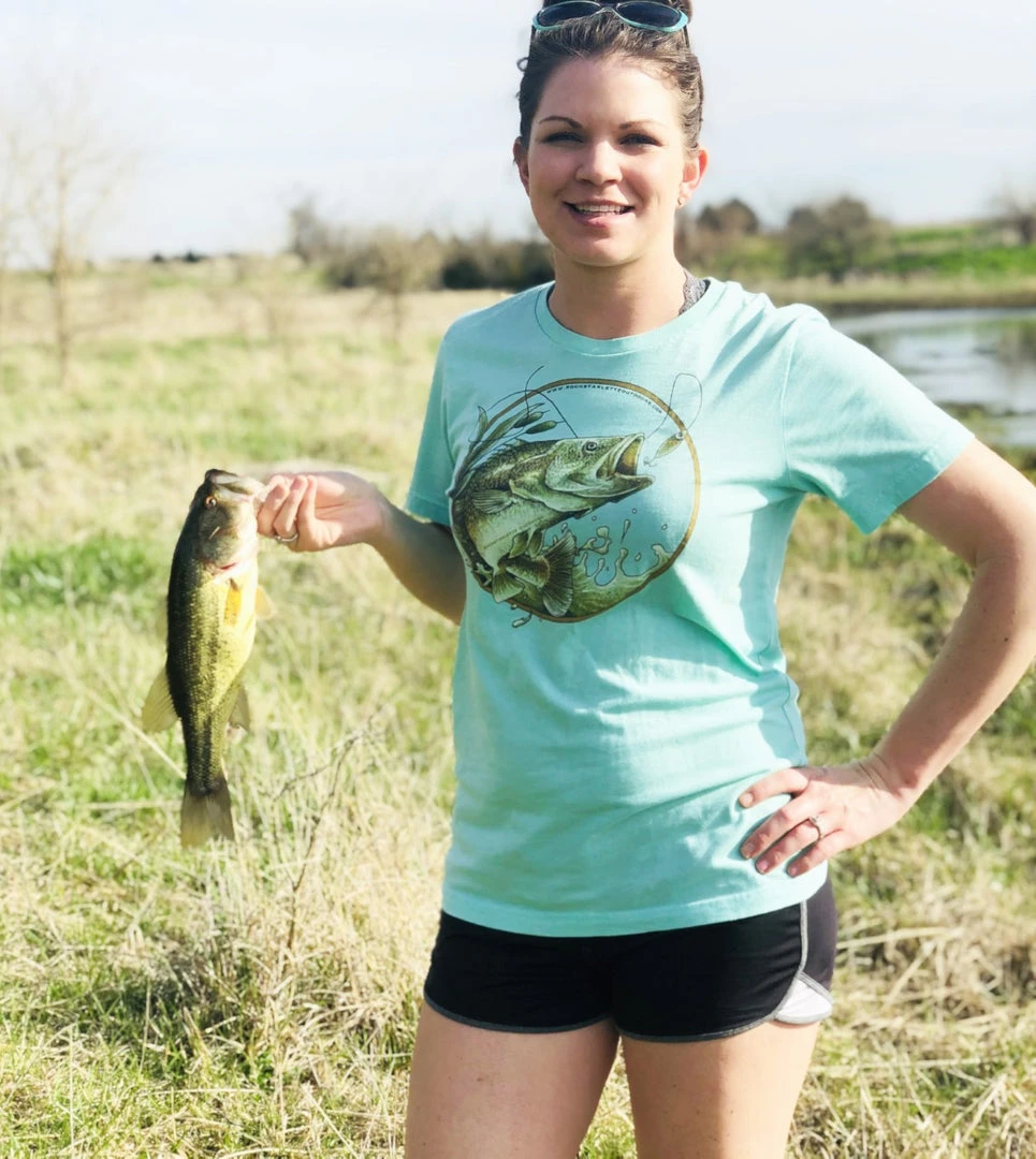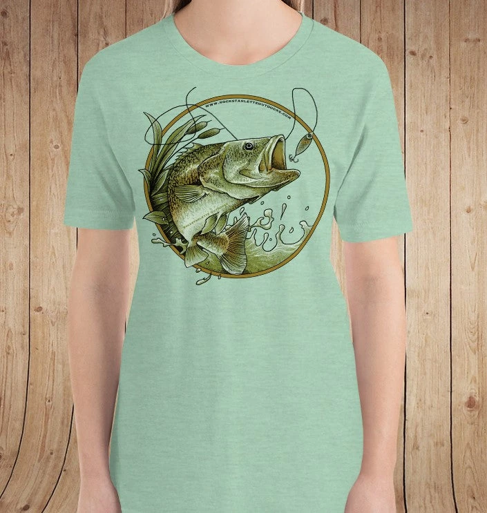 Do you love Bass Fishing as much as we do? This is our NEW fun bass logo loose fit crewneck T Shirt.